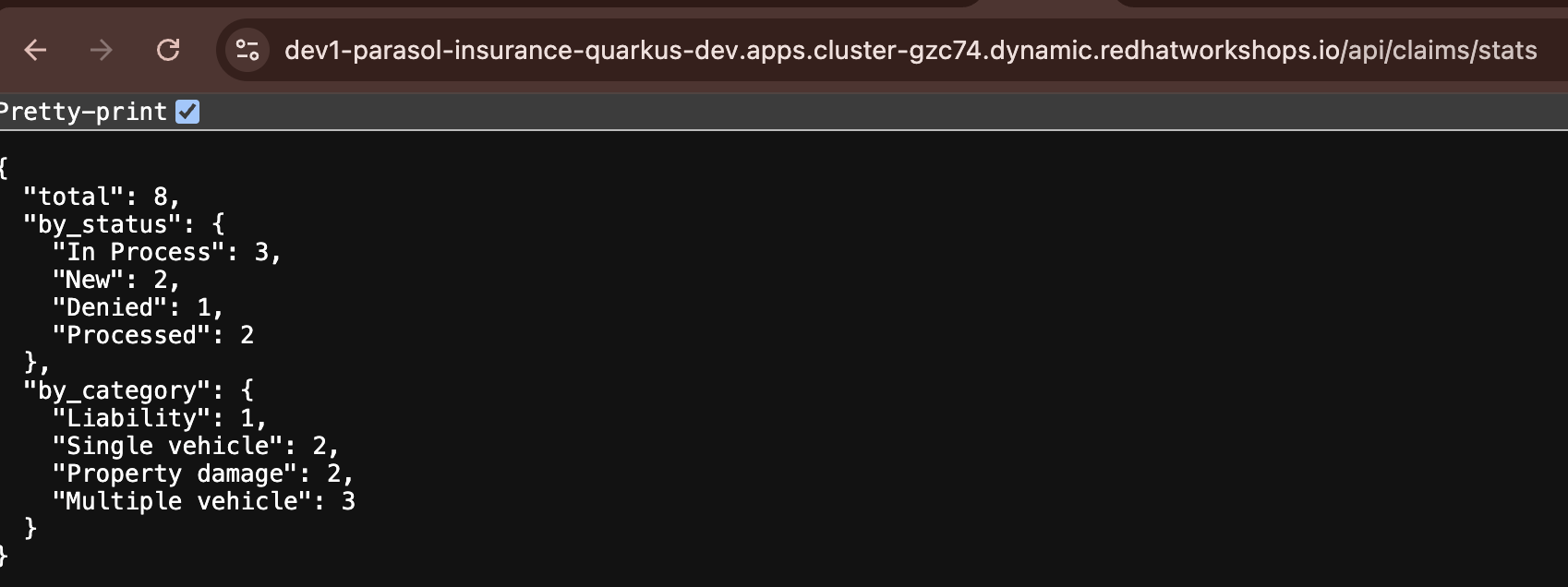 dashboard.htmlwithapi/claims/statsand hit enter to access the new endpoint -