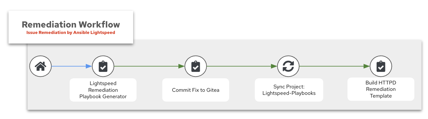 This allows Ansible Lightspeed to generate a remediation playbook without writing code manually. The job template created here will be used in the second workflow.