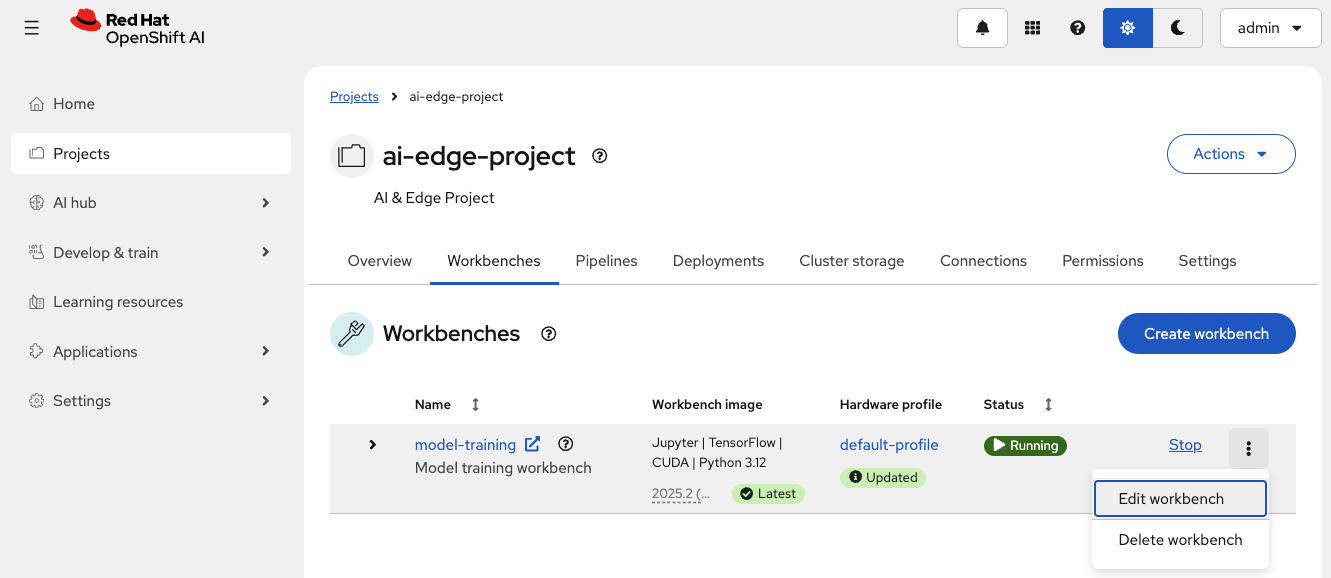 ai-edge-projectproject in the Red Hat OpenShift AI Dashboard -