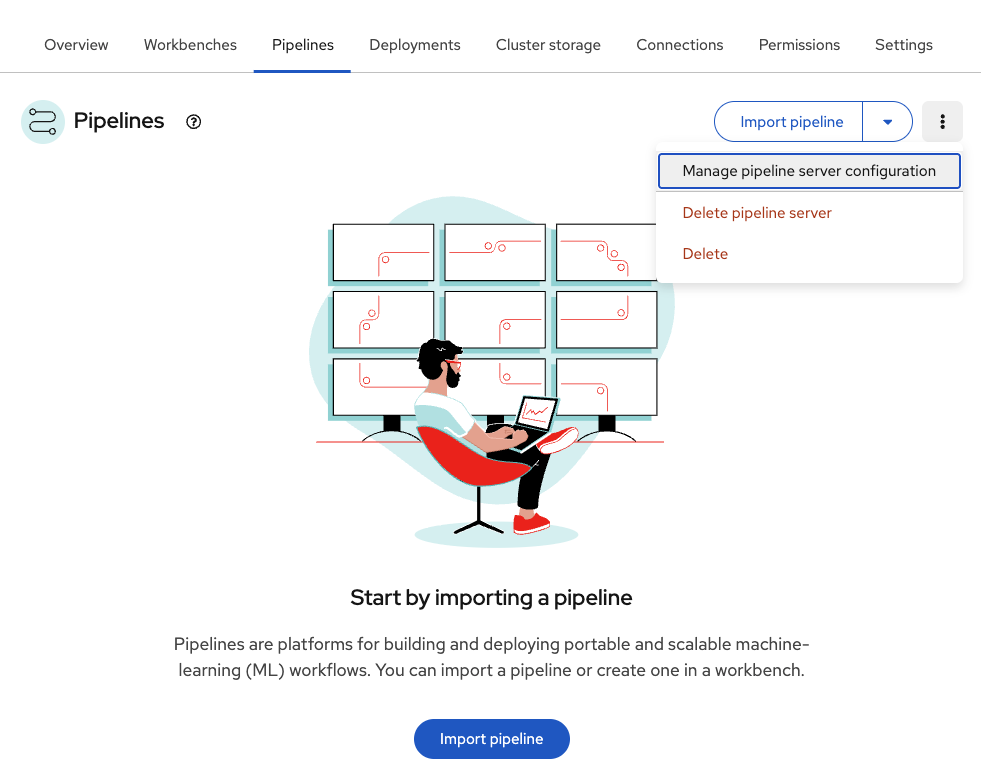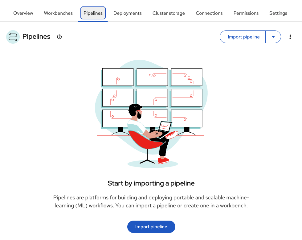 Verify the pipeline server is pre-configured and shows Import pipeline