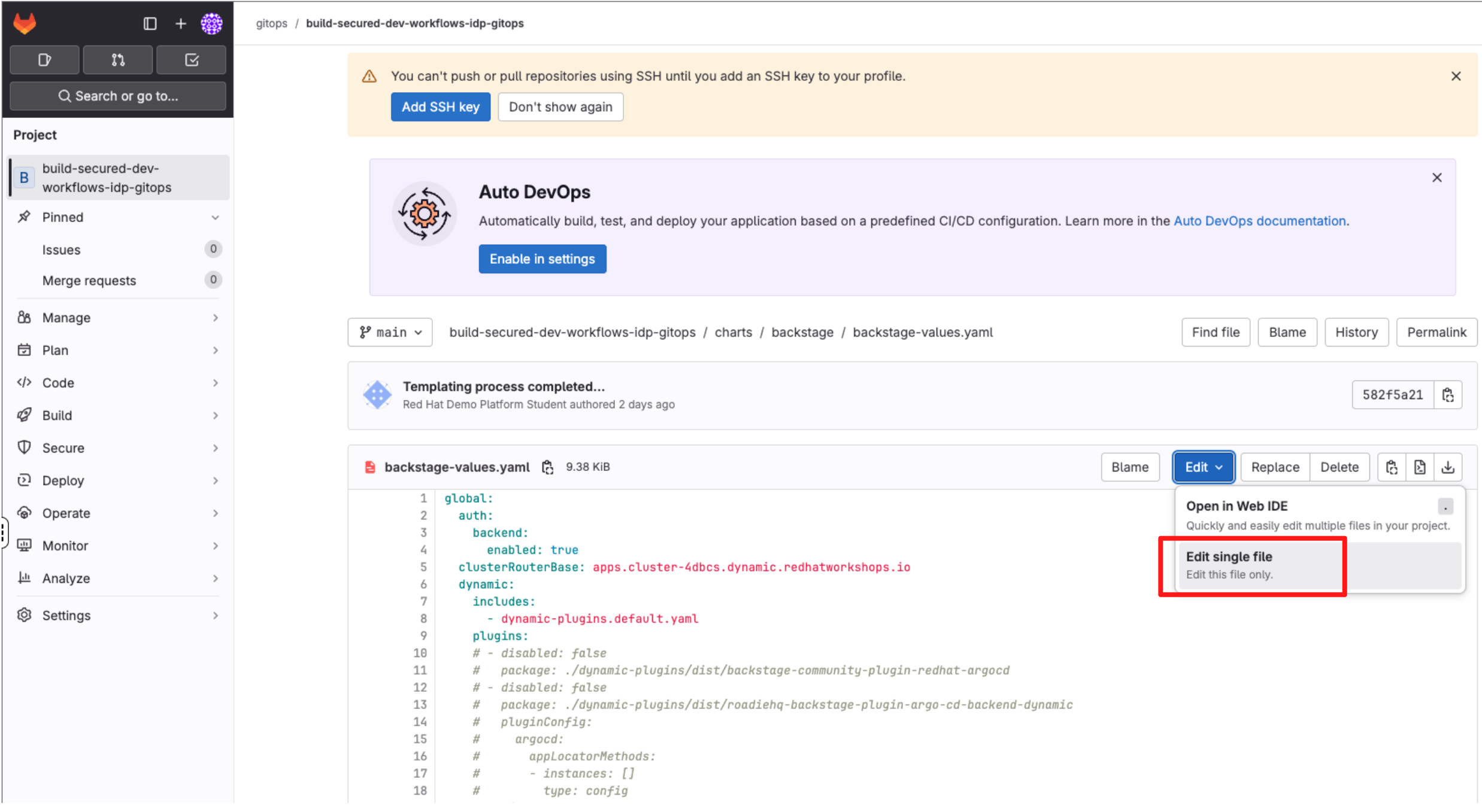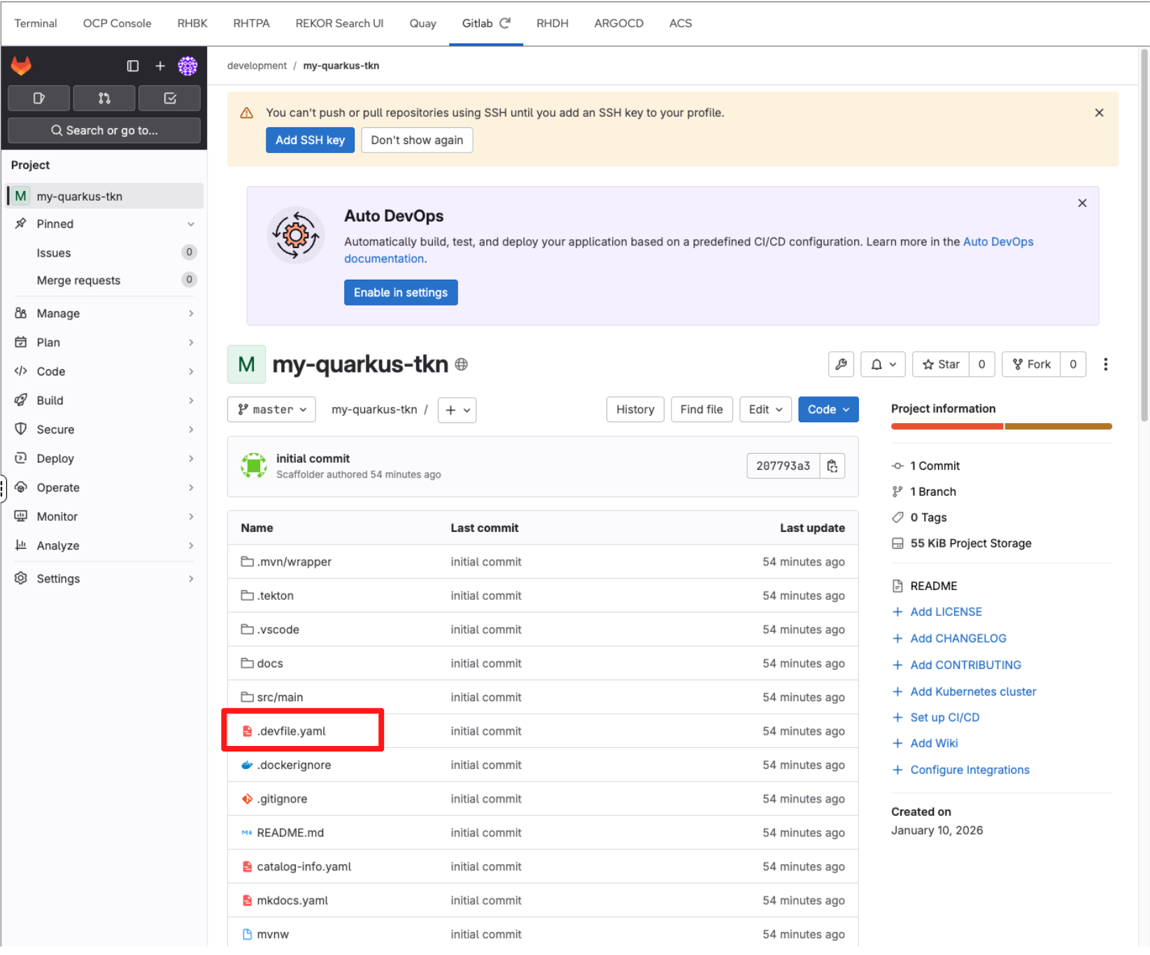 4.1 Log Back in to GitLab Update the Devfile