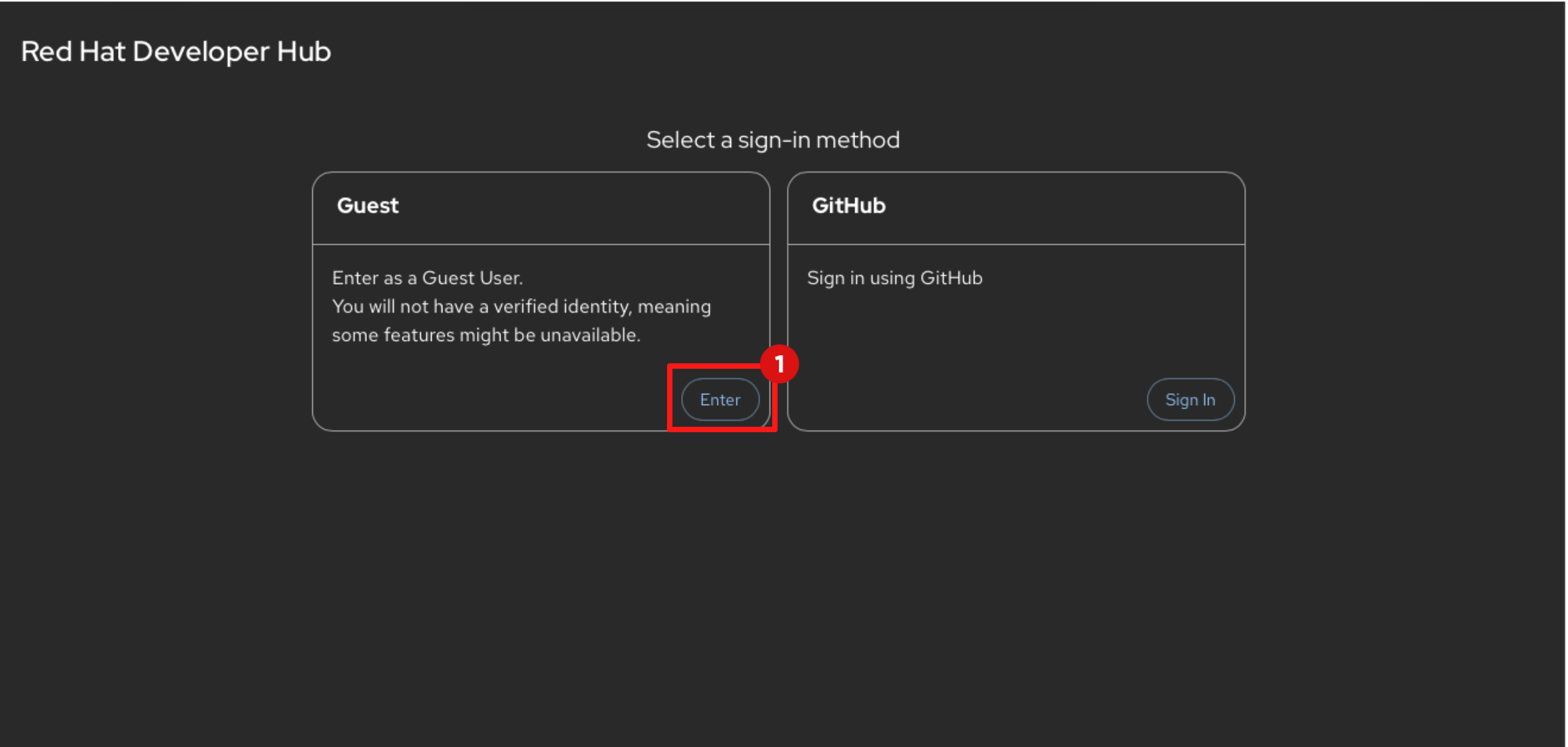 You should immediately notice that Guest access is no longer available and the only login option is Sign in with OIDC, backed by Red Hat Build of Keycloak.