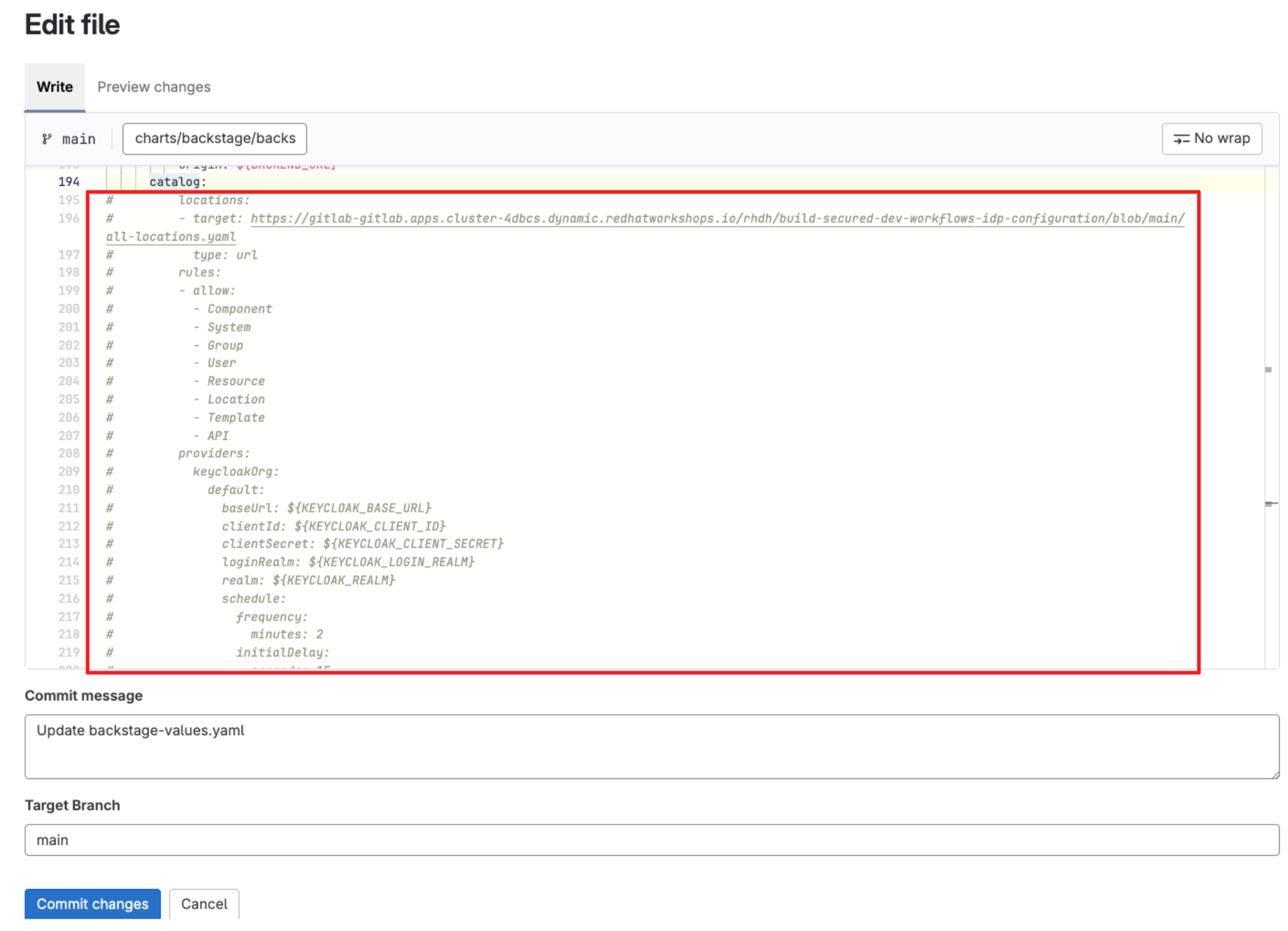 In the next step, you’ll return to Red Hat Developer Hub to verify that these changes are now active in the portal.