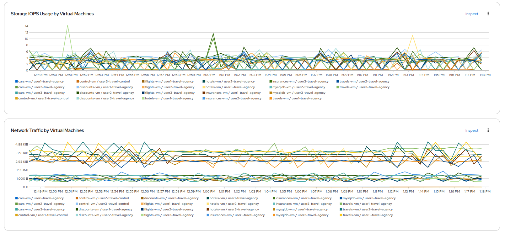 This will provide us with a dashboards page that shows various fields of curated information such as Top Consumers of Memory, Top Consumers of CPU, and other information commonly sought after in graphic formats like Storage IOPS Usage by Virtual Machines and Network Traffic by Virtual Machines over time.