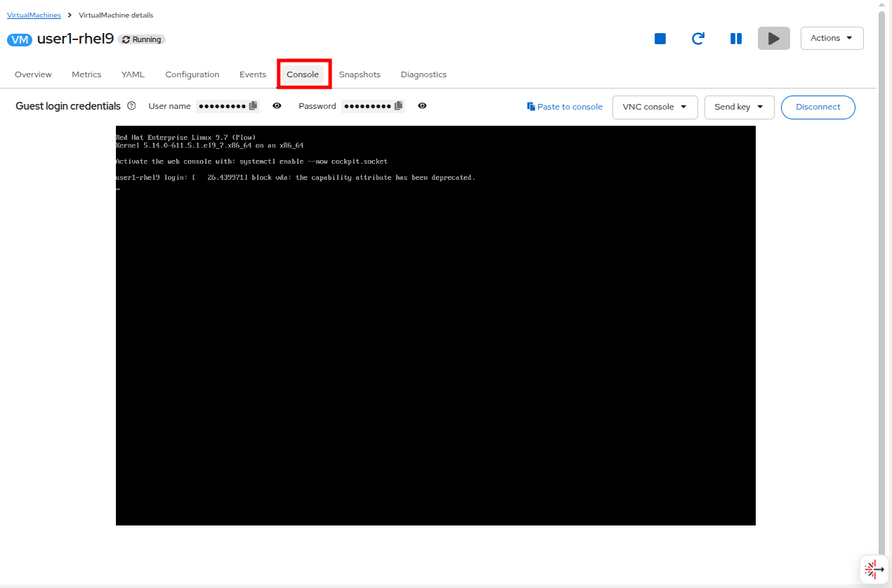 In this task we will configure a VM to fail on purpose, and then ask OpenShift Lightspeed if it can diagnose our issue to see what it says.