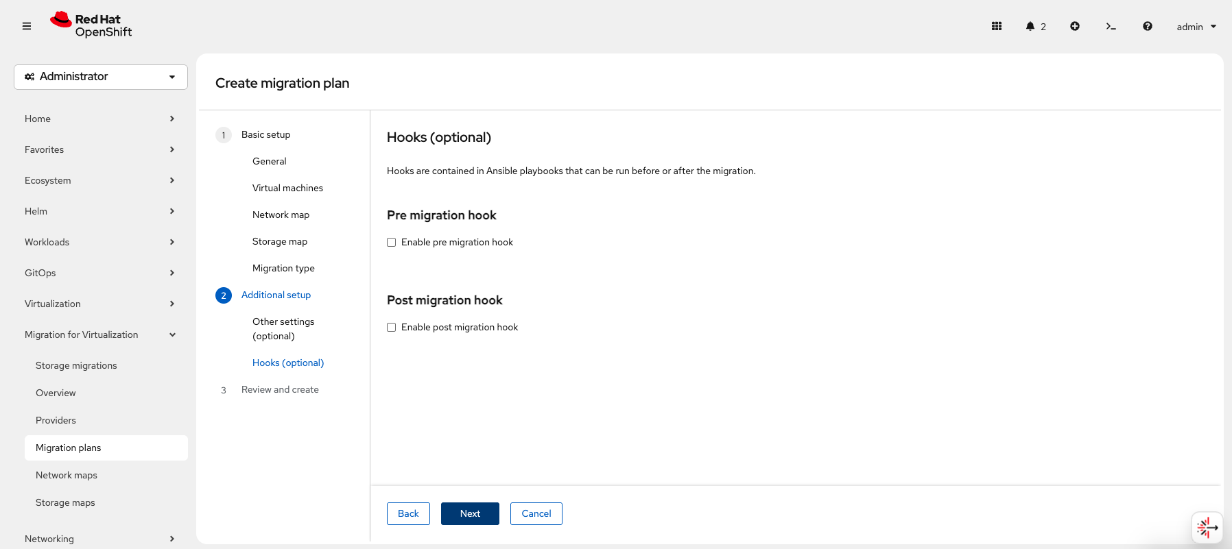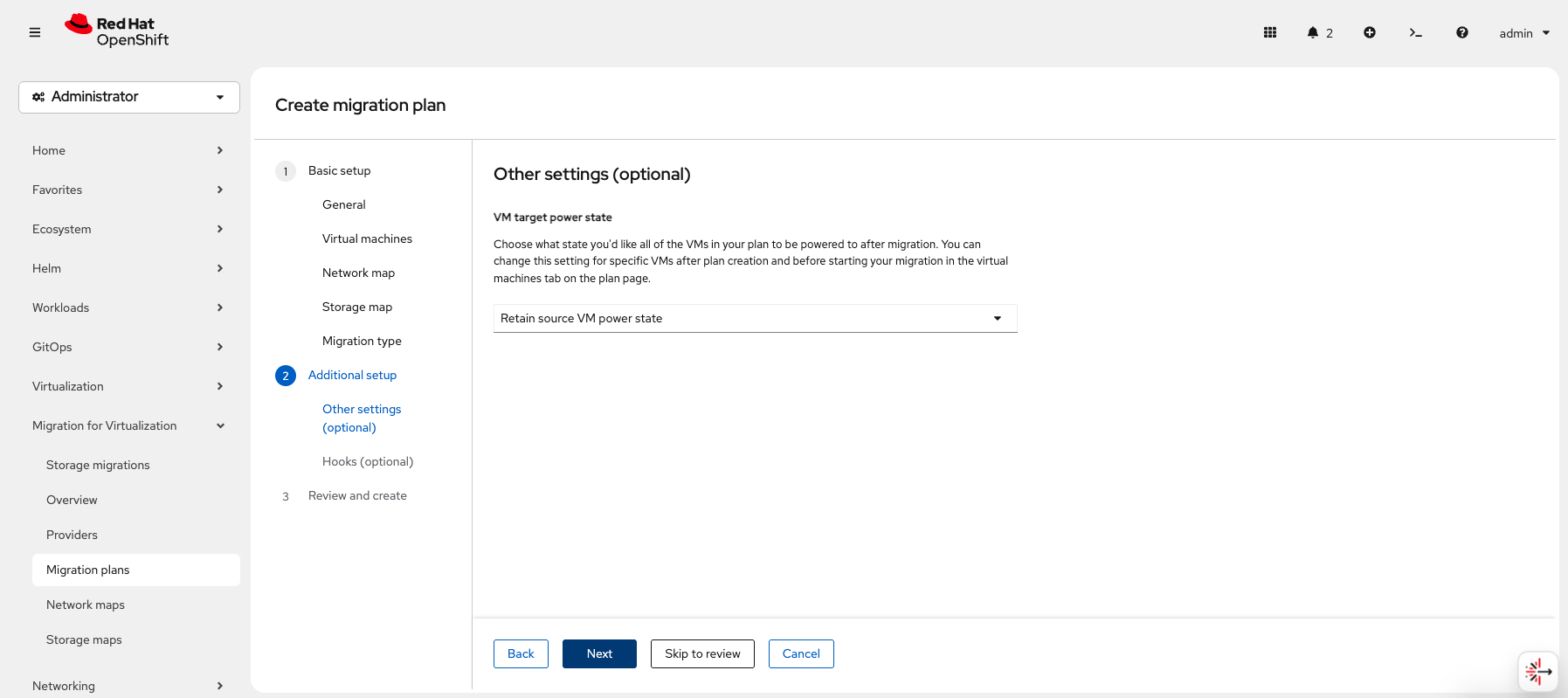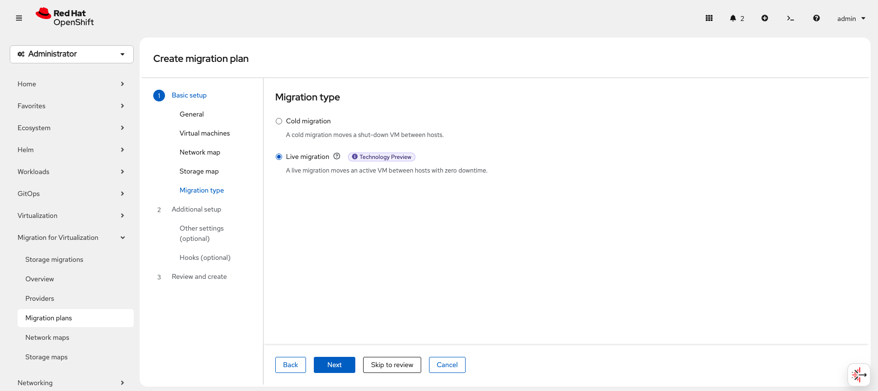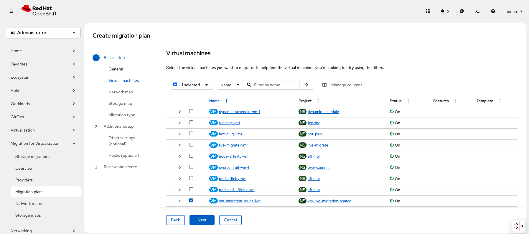 namespace-to-namespace. Leave the Plan project as the default value of openshift-mtv. -
