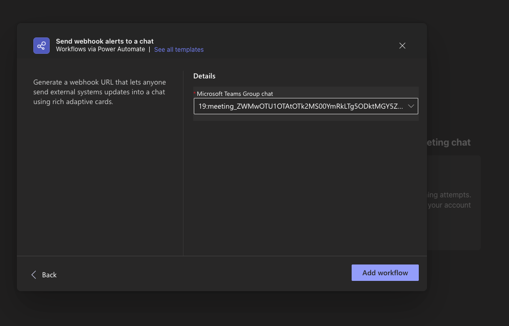 Webhook URL: Paste the Webhook URL you copied earlier from Teams.