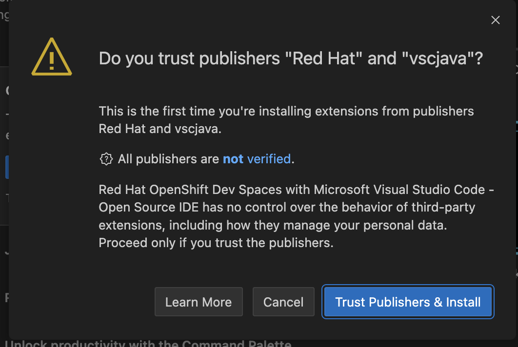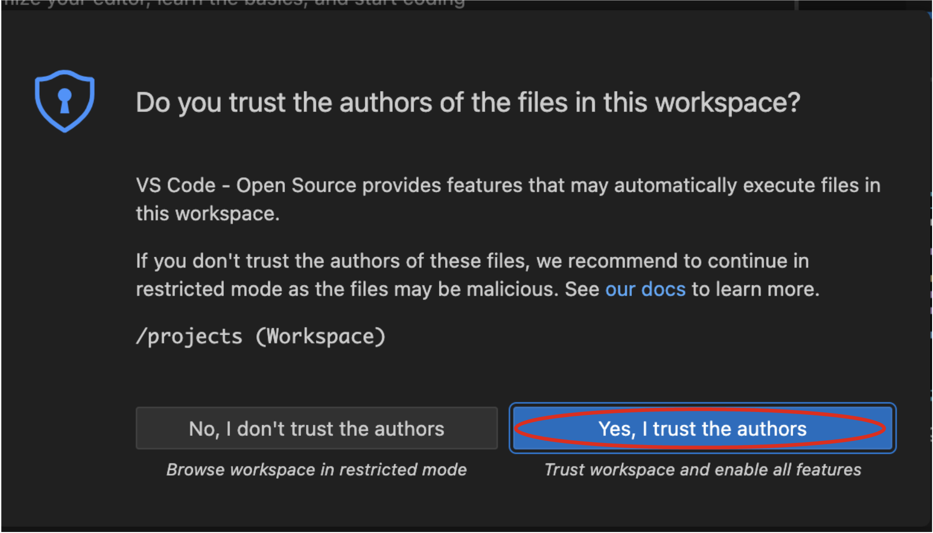 When prompted with Do you trust the authors of this repository? popup, select