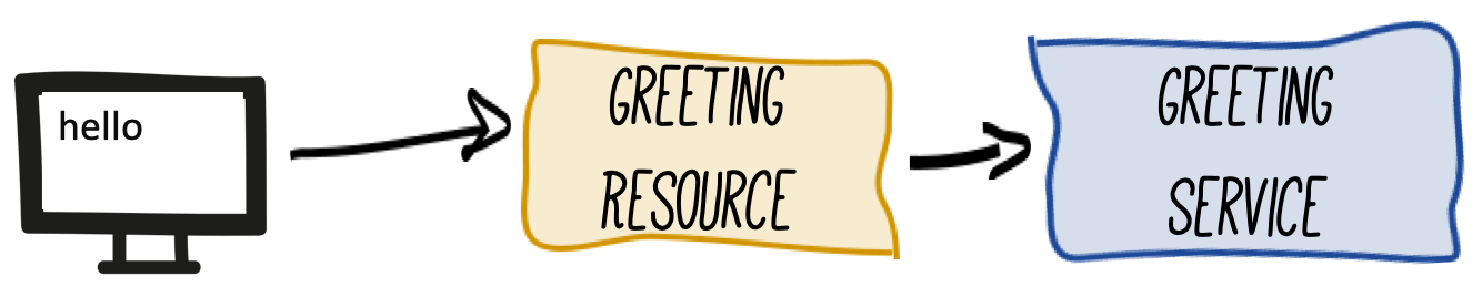 This class has a very simple RESTful endpoint definition that returns hello to requests on