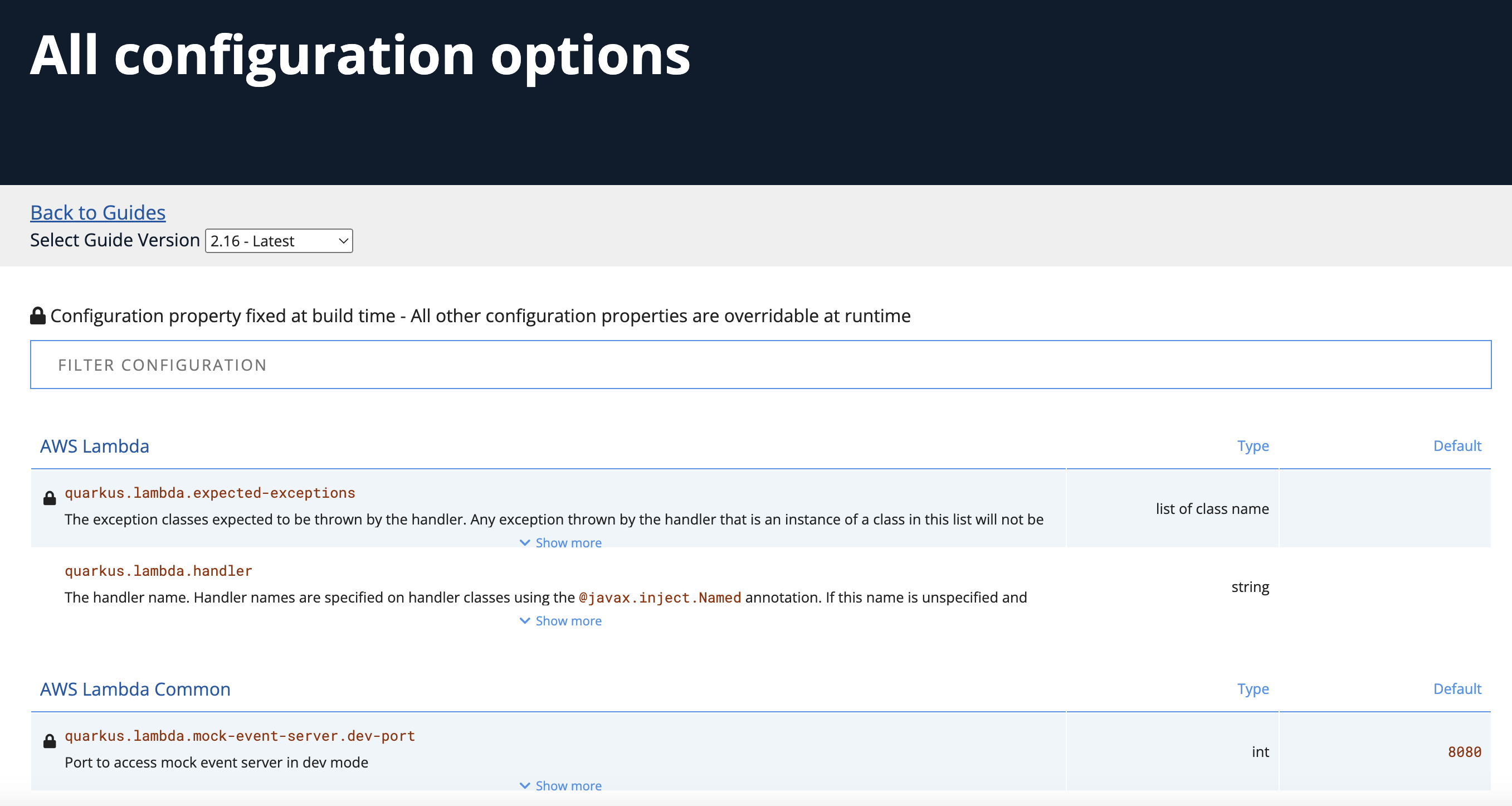 Quarkus Configuration options