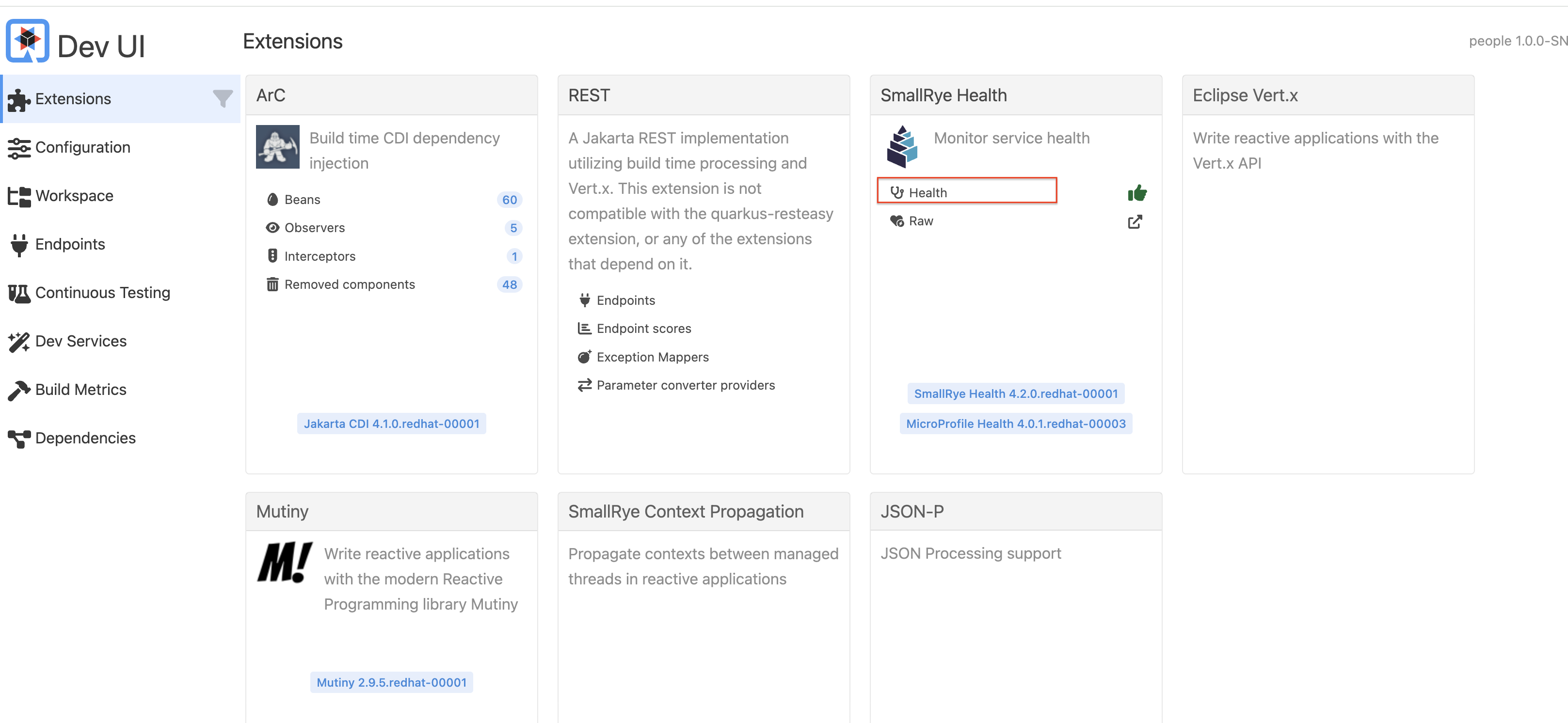 Healthin SmallRye Health extension: -