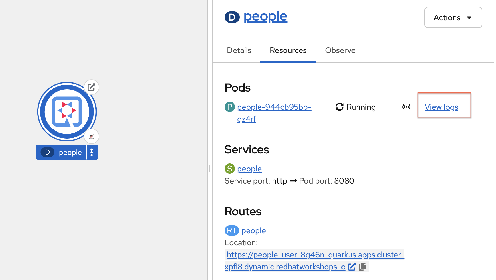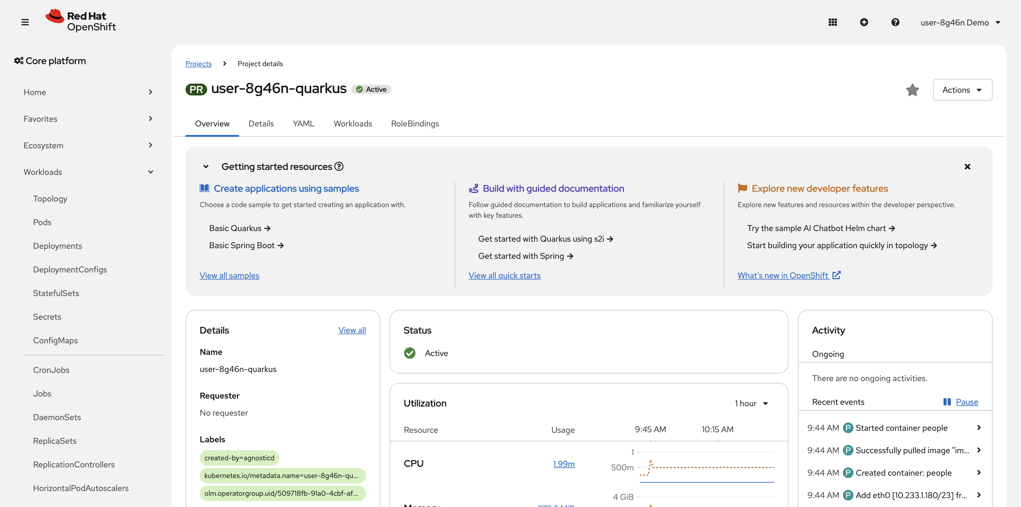 {user}-quarkusproject to view Overview of the project: -