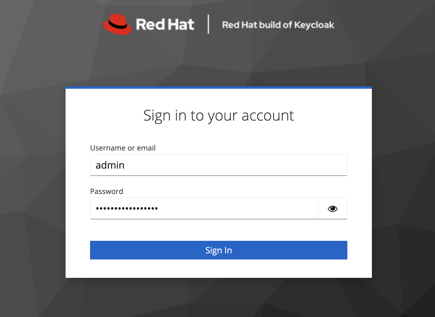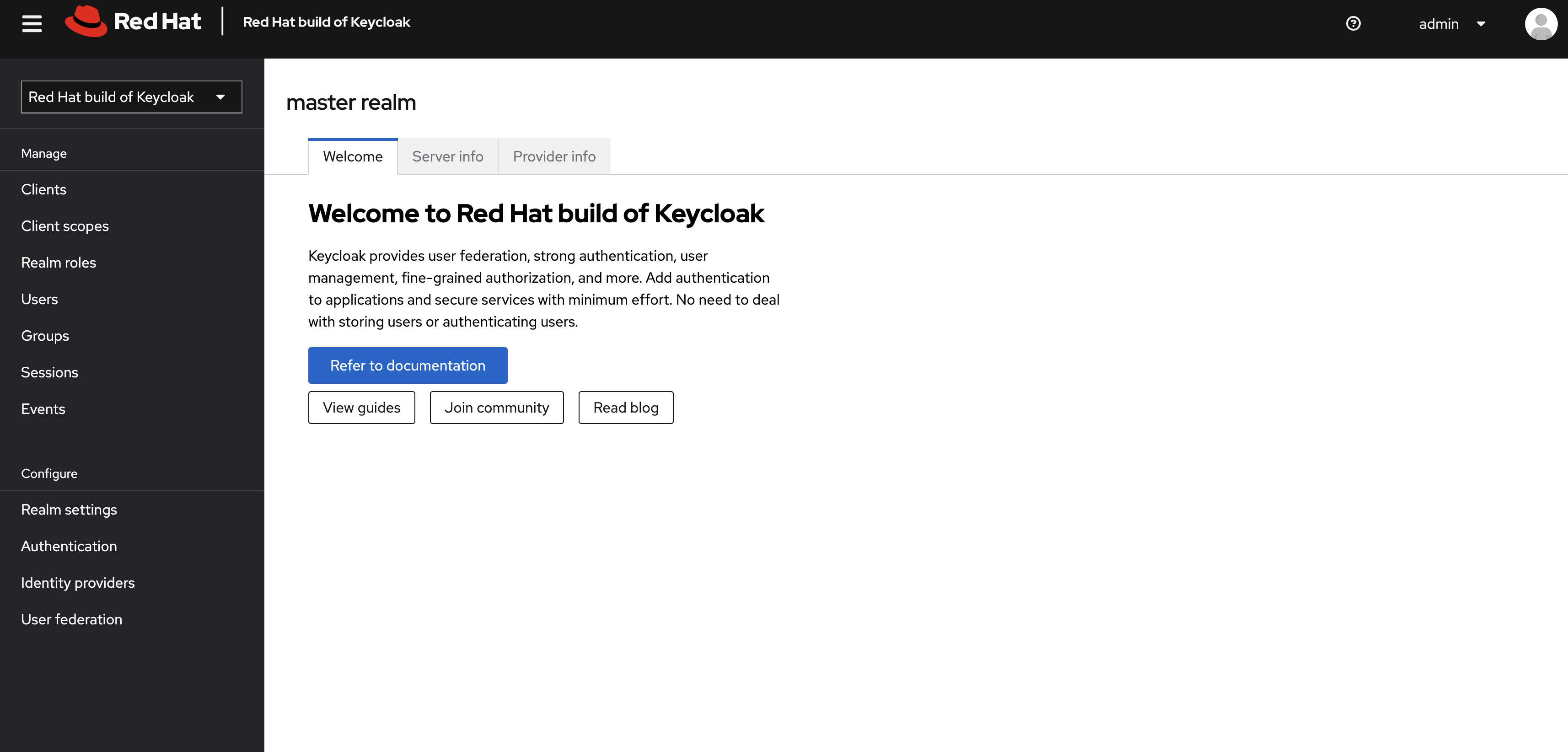 Go back to the Keycloak administration console and login as admin user (using the password from the Secret as before). You should now see a new realm in the Realm dropdown. Select the quarkus realm by clicking on it.